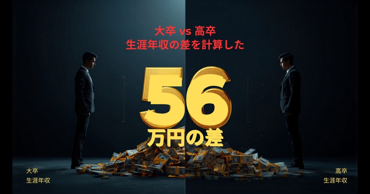 「大学に行くべきか、高卒で就職すべきか」——この選択で、生涯年収は何千万円も変わる。厚生労働省「令和5年賃金構造基本統計調査」と関連データをもとに、大卒と高卒の生涯年収の差を徹底計算した。結論から言うと、差は想像以上だった。しかし、単純に大卒が得とも言い切れない現実も見えてきた。
